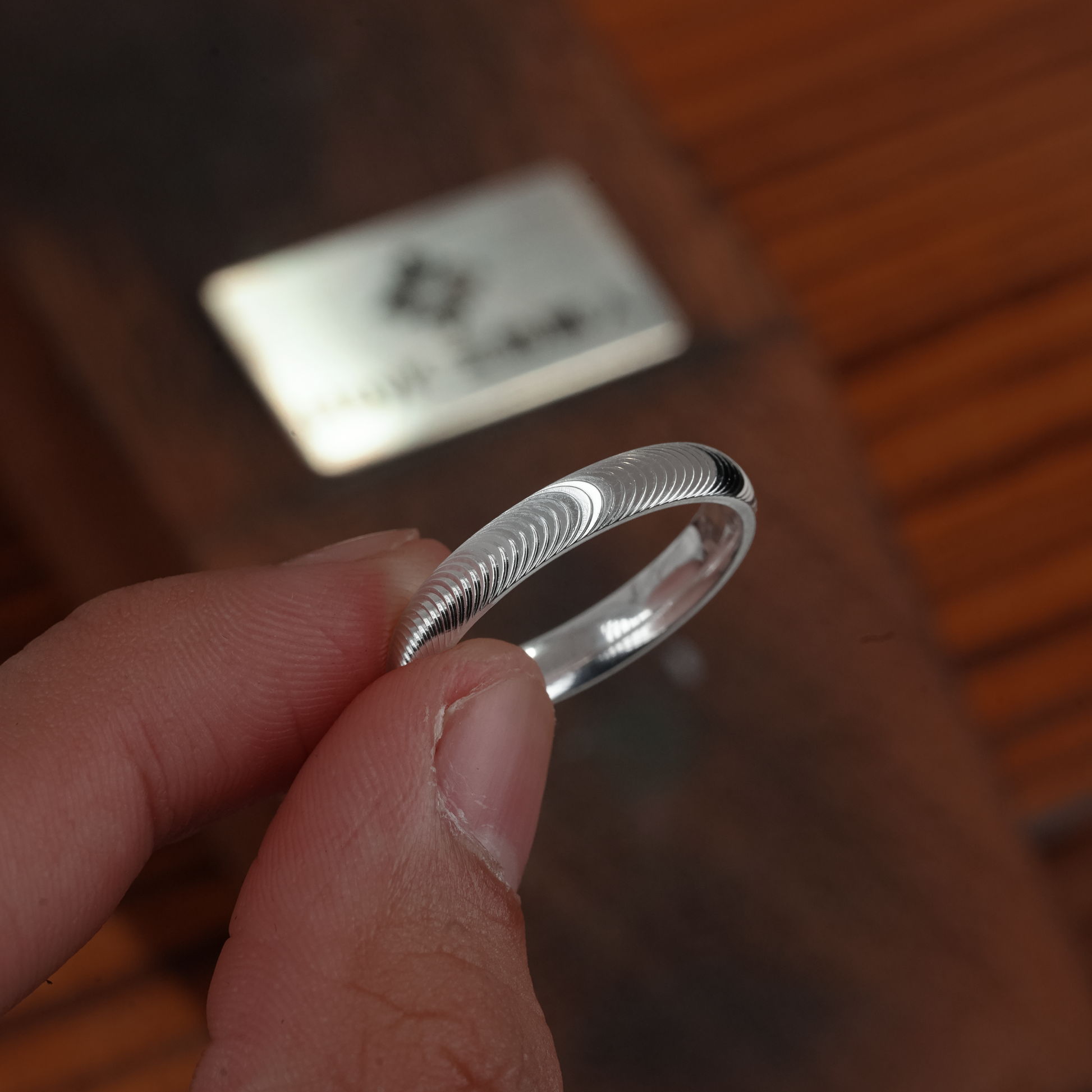 S925シルバーを使用した「キャッツアイ」リングは、職人の手仕事によって丁寧に仕上げられ、落ち着いたグレートーンの銀色と、金属表面に現れる独特の“キャッツアイ”の光の表情が魅力です。直感や洞察力を象徴するデザインは、身に着ける人に安定感と守護のエネルギーをもたらします。幅3.8mmの程よい厚みを持つリングには、流れるような文様が刻まれ、指にしっかりとフィットする安心感のあるフォルムに仕上げました。酸化加工を施したS925シルバーは、陰影のある美しさと高い耐久性を兼ね備え、肌にもやさしい素材です。日常使いはもちろん、特別な想いを込めたギフトとしてもふさわしい、静かな力を宿した一本です。