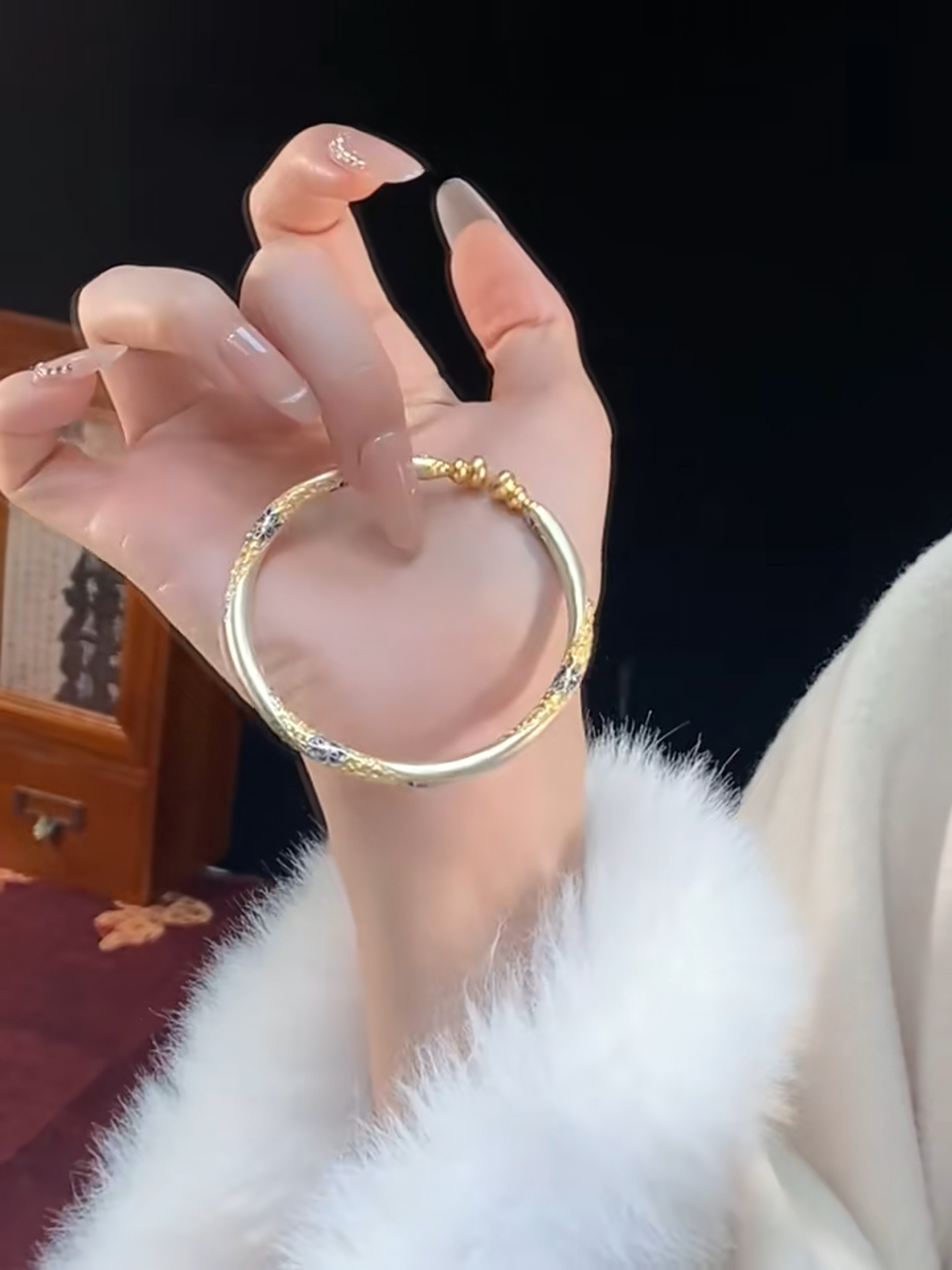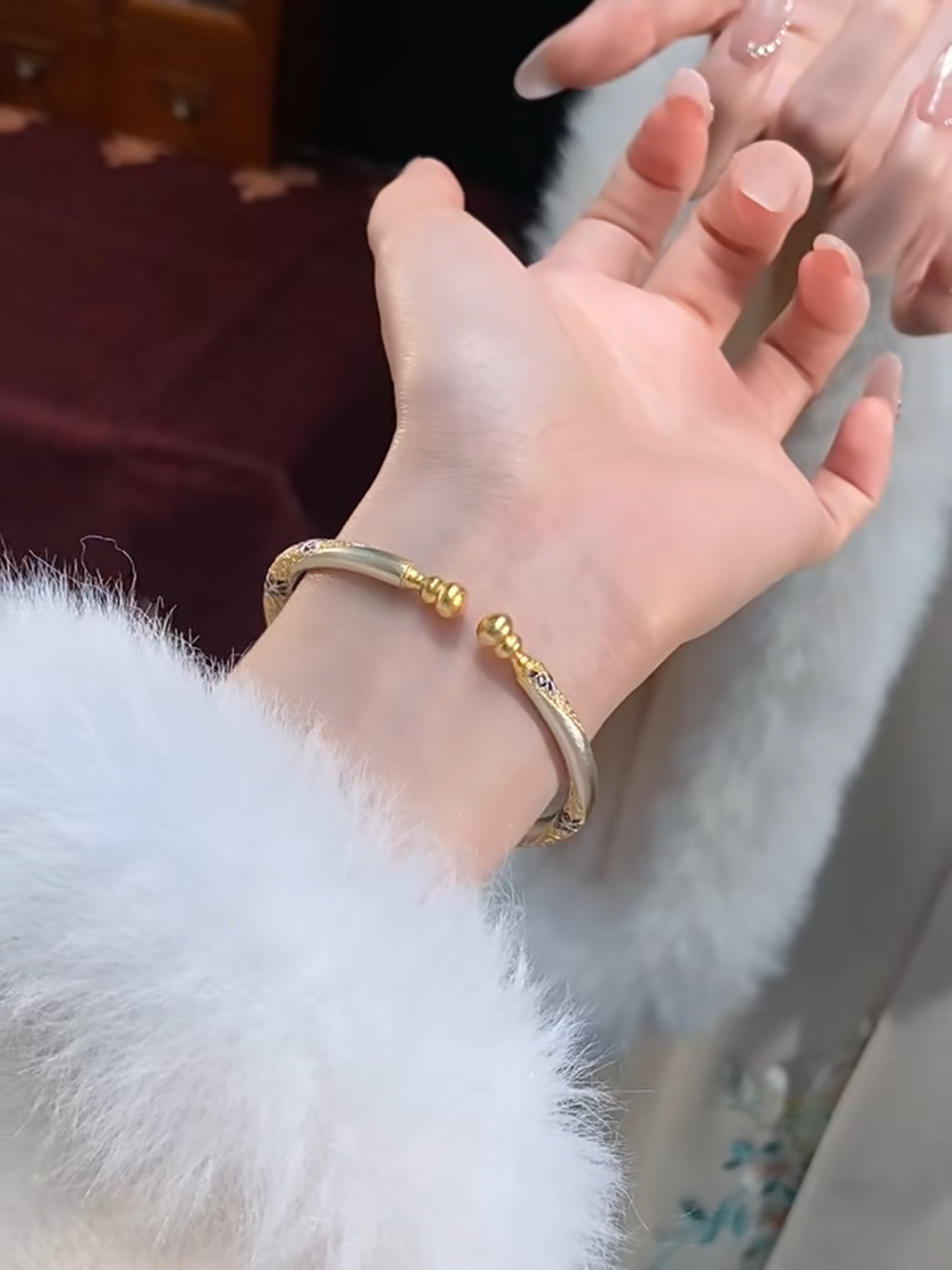 クラシックな立体花模様のバングル