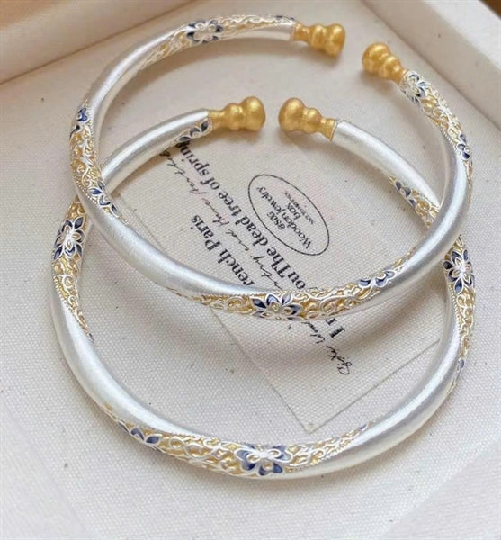 伝統的な美しさを感じさせる、立体的なお花模様が施されたS999純銀のバングル。