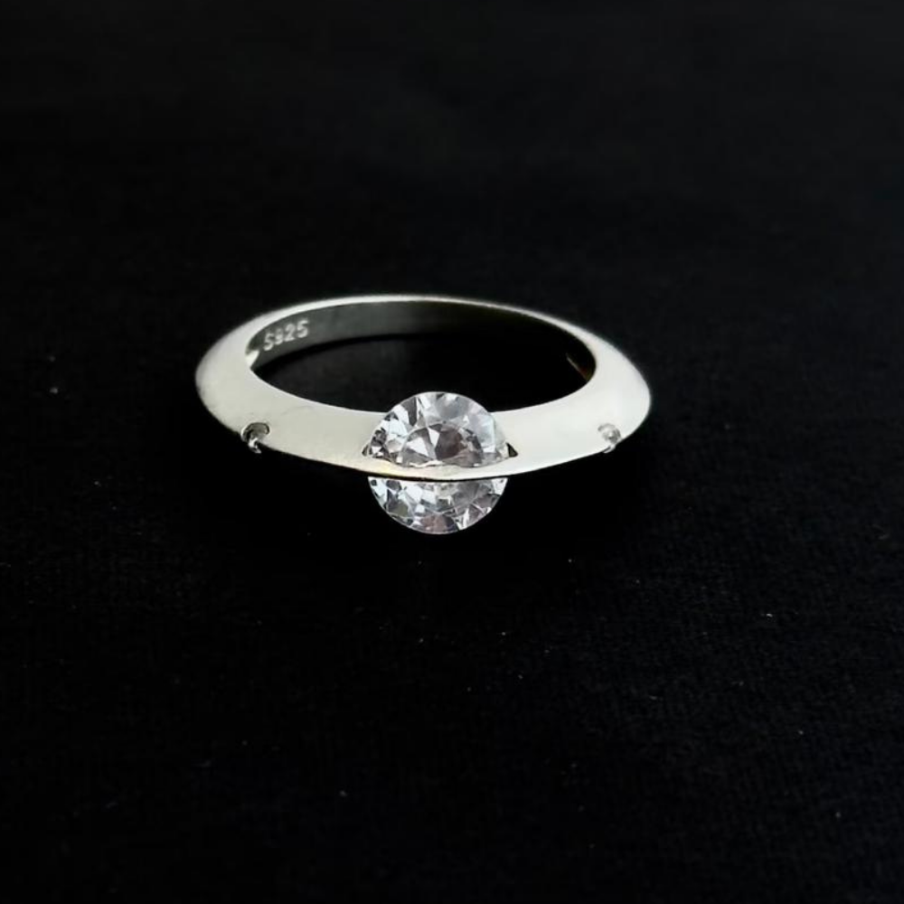 Un anillo inspirado en la belleza de los pequeños planetas, elaborado en plata S925 y engastado con moissanita de brillo intenso