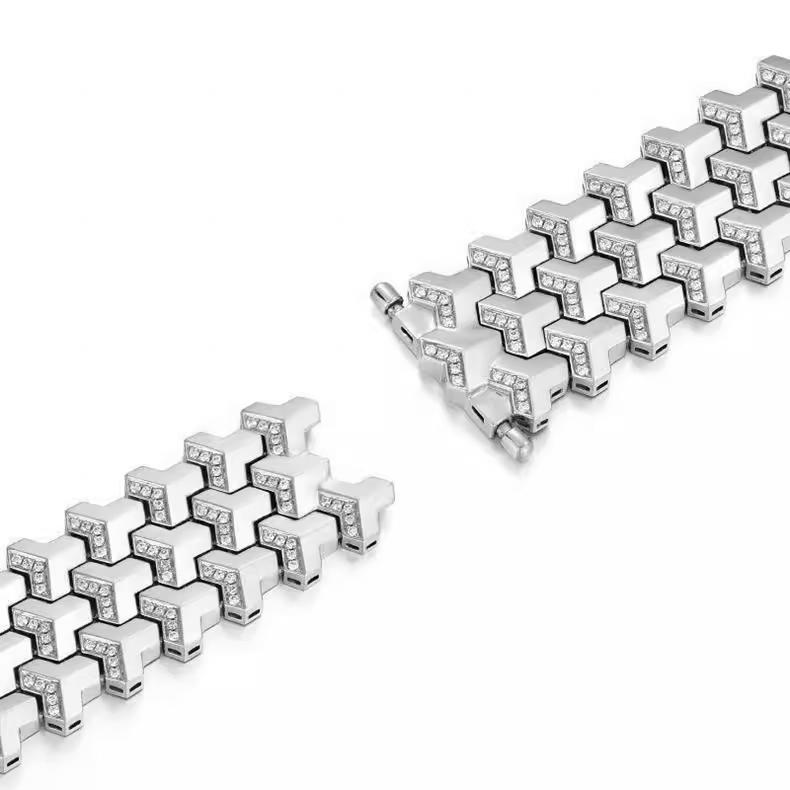 “Cuando tomo la plata S925 en mis manos, ya pienso en cómo cada eslabón de esta pulsera tipo armadura va a encajar perfectamente. Tres filas de piezas geométricas que se alinean con precisión, cada una revisada y ajustada con cuidado, asegurando que la pulsera no solo se vea sólida y masculina, sino que también tenga ese brillo y detalle artesanal que solo el trabajo hecho a mano puede dar. Esta es una pieza para hombres que quieren fuerza, carácter y elegancia en su muñeca.”