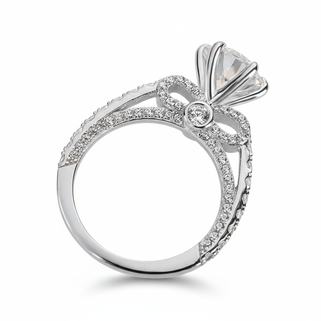 El Anillo Lazo Brillante está elaborado en plata S925 de alta calidad y engastado con piedras Moissanite. Su delicado diseño de lazo con piedras centelleantes crea un aspecto elegante que realza el encanto y la personalidad de quien lo lleva.
